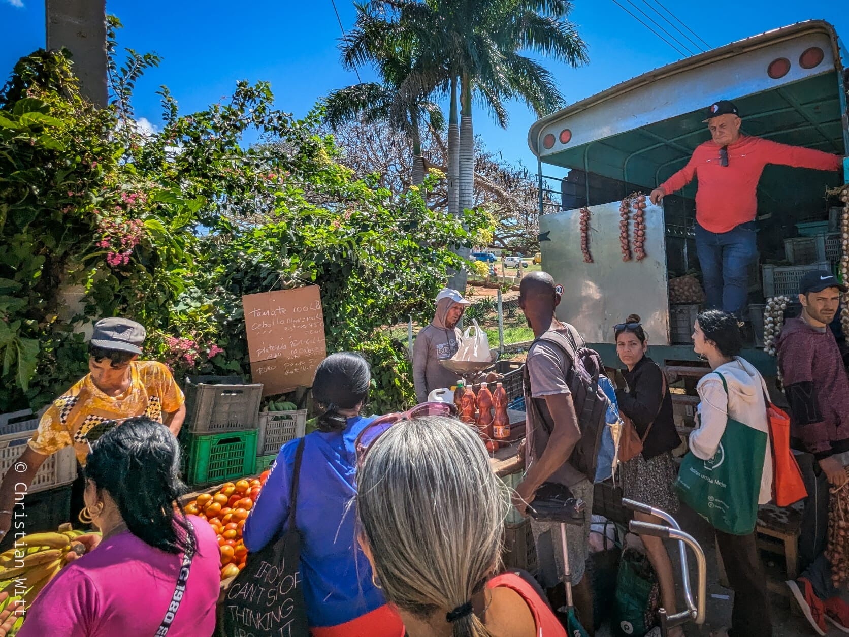 Aus Trinidad schickt Christian Witt Fotos vom dortigen Wochenmarkt. Das Einzugsgebiet der Händler reicht weit ins Landesinnere. Manche Lieferwagen haben fast 100 Kilometer zurückgelegt, um ihre Waren anzubieten.
