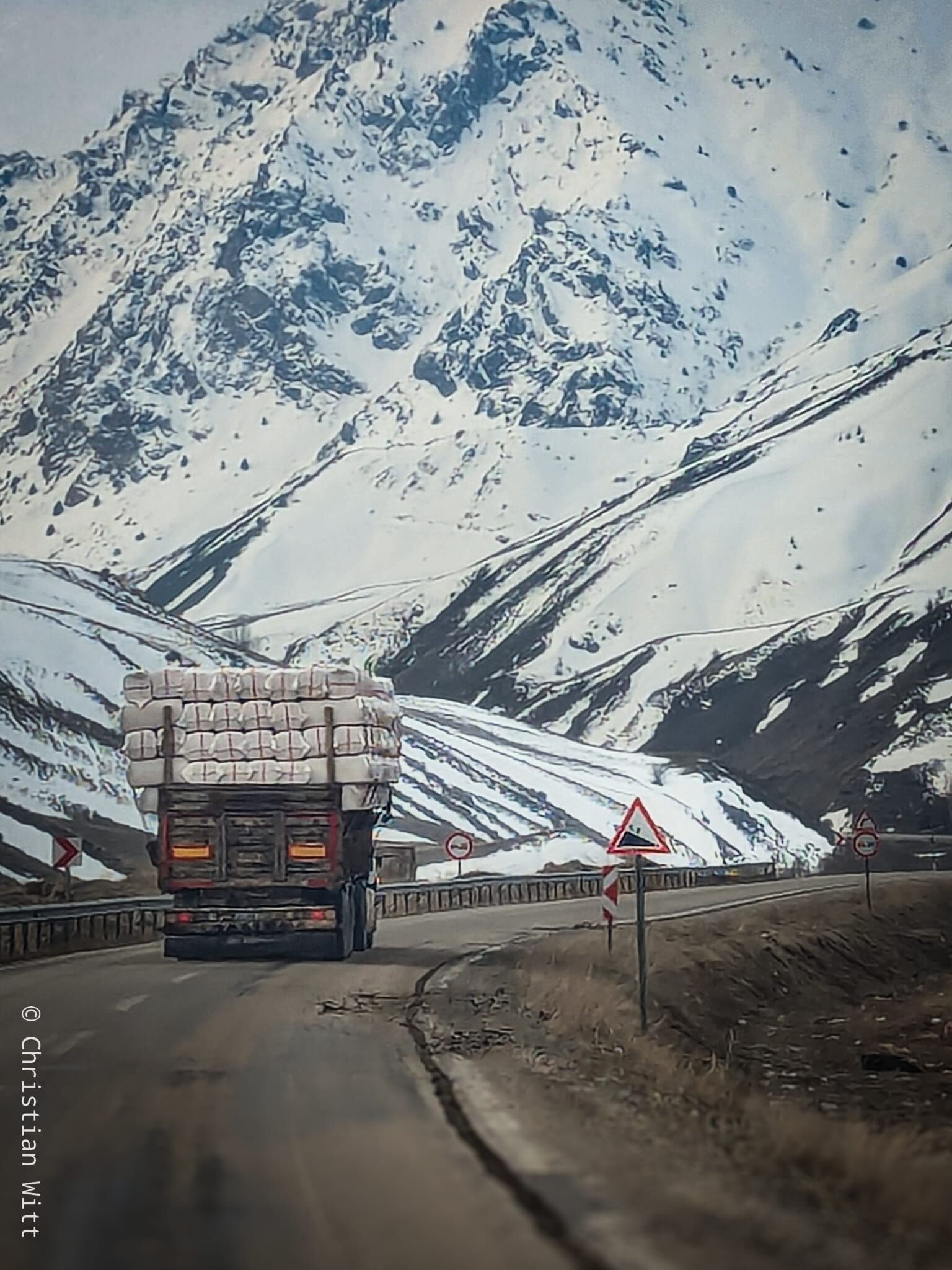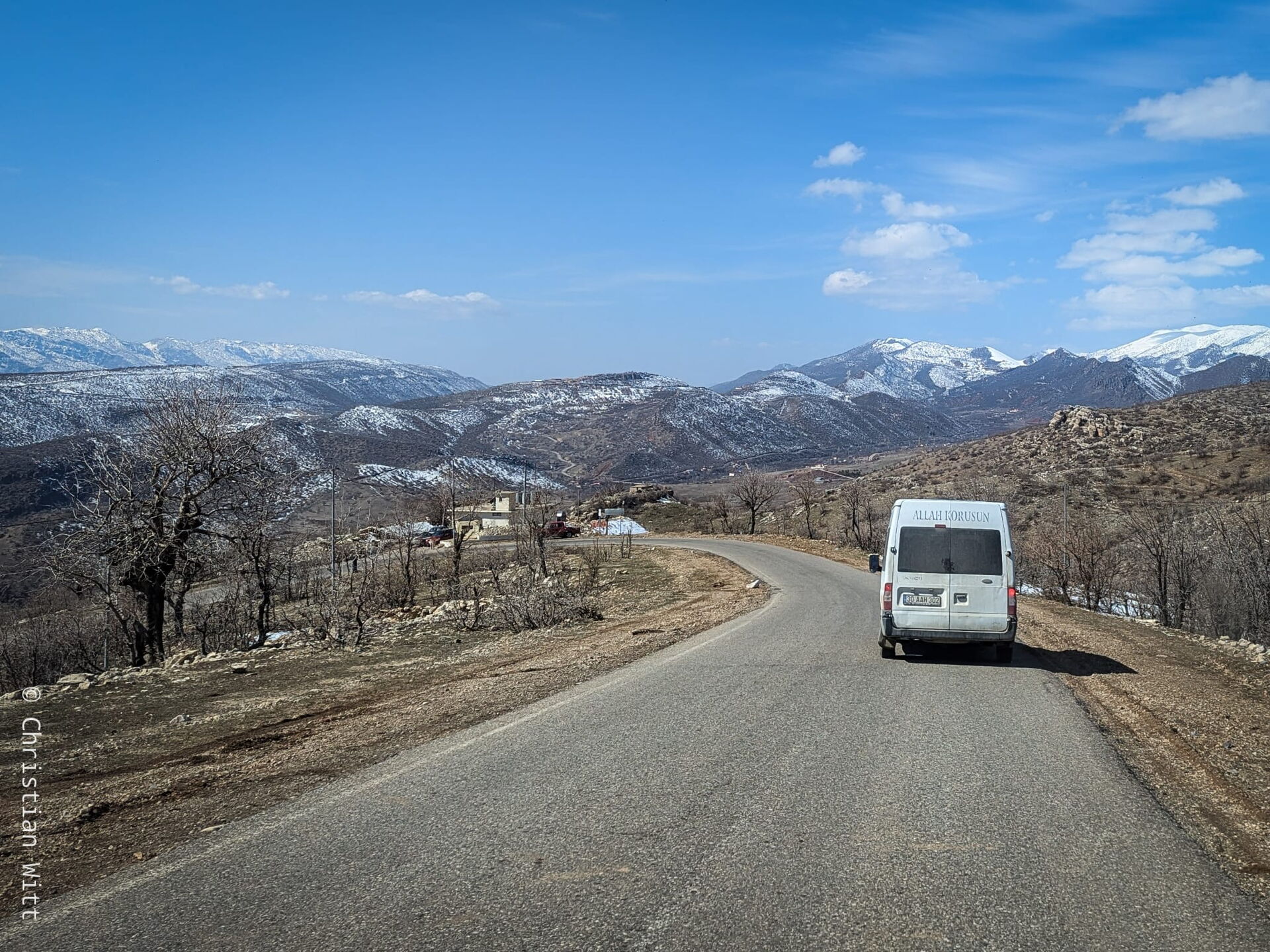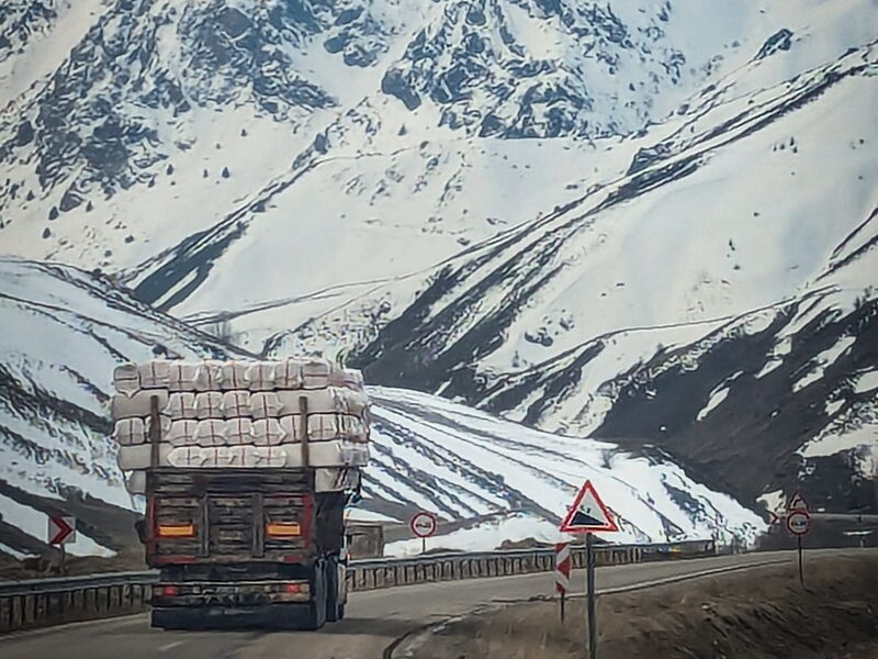 Auf der Route ist im Moment wenig los. Es bleibt aber eine durchaus frequentierte Transportroute für Waren aller Art. In den Bergen wird extrem viel kontrolliert. Gefühlt wird man hier alle fünfhundert Meter angehalten, muss sein Gesicht und alle fünf Kilometer auch seinen Pass zeigen. Das Kontrollnetz ist dicht. Aber da sich die türkischen Kurden – meine Mitfahrer – gut mit den irakischen Kurden verständigen können, profitiert auch der Reisende aus Deutschland davon.