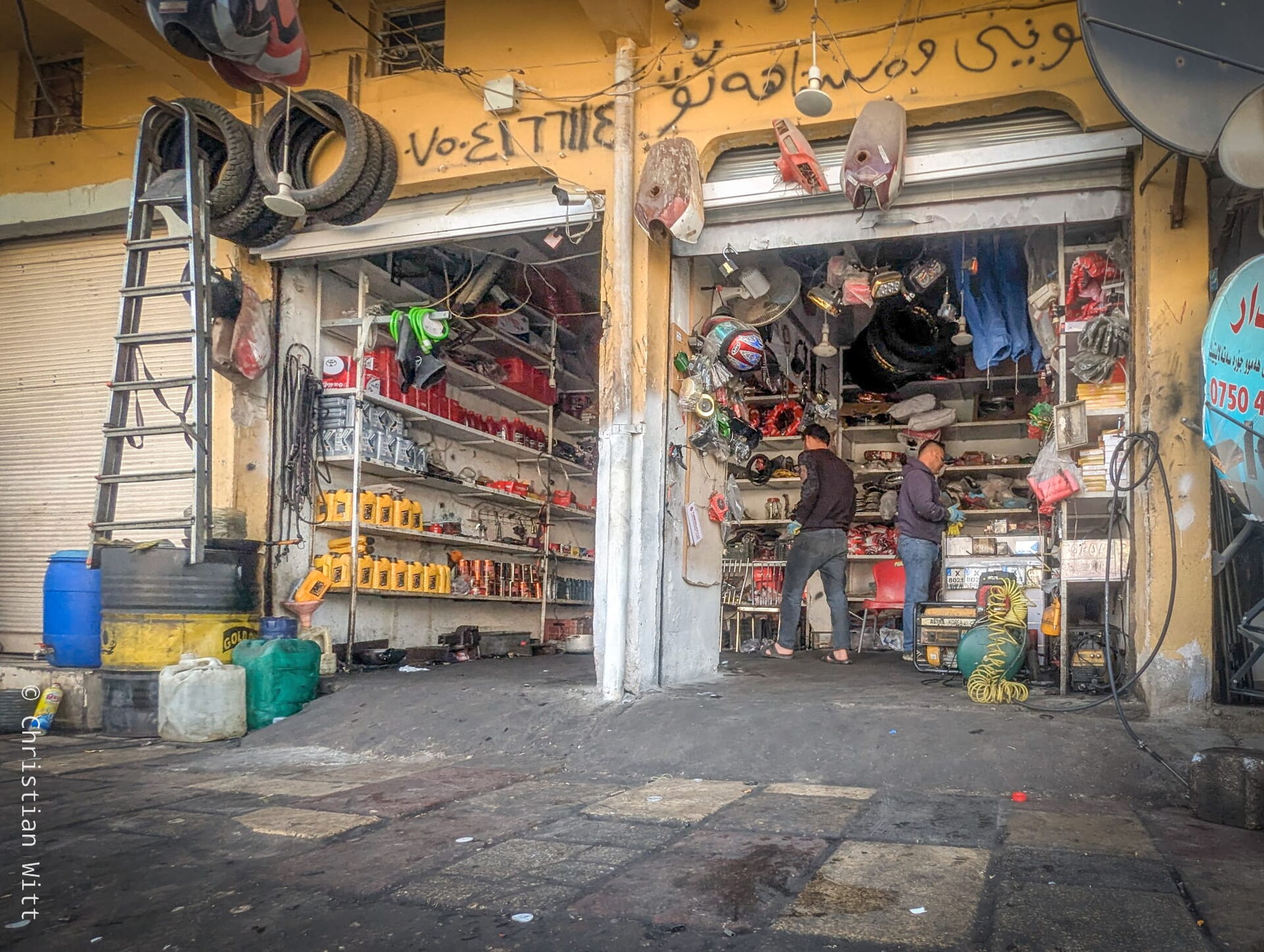 Auch die Einkaufsläden in Erbil sind voll. Was mich aber noch mehr überrascht hat, auf dem Hinweg sah ich endlose knallgrüne Felder mit Getreide und Reis. Man stellt sich den Irak gemeinhin immer dunkel und staubig vor. Aber zumindest hier im Norden, in Kurdistan, sind das blühende Landschaften, die eher an Mecklenburg-Vorpommern und andere Kornkammern erinnern.