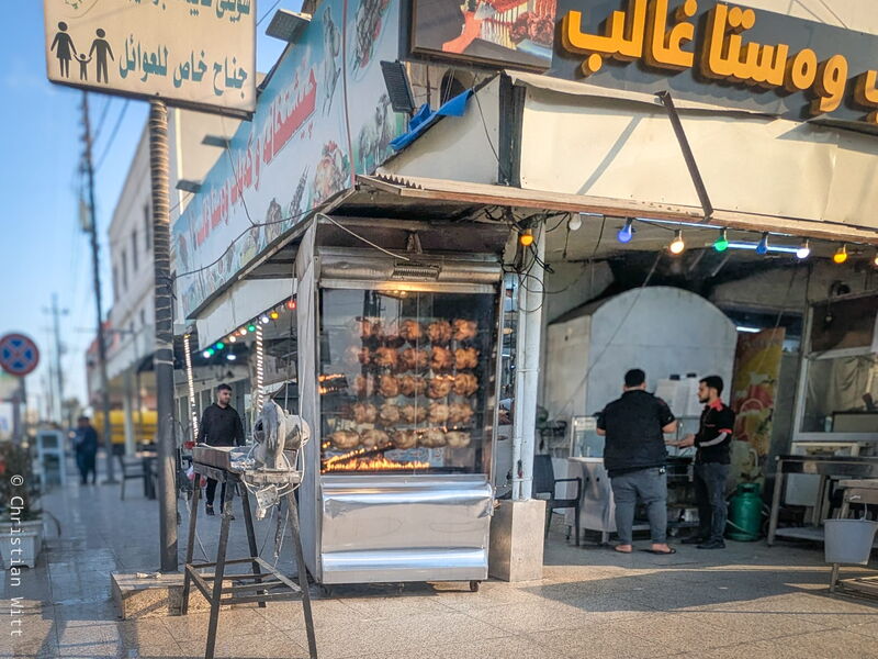 Hier rechnet man ganz offensichtlich nicht mit Touristen. Aber das fühlt sich angenehm an. Denn als Tourist in islamischen Ländern – etwa in den Touristenhochburgen – über einen Markt zu gehen, kann schnell ein besonderer Stress werden. Davon spürt man in Erbil überhaupt nichts. Im Gegenteil: Man guckt mich freundlich an, lächelt. Bald jeder, den ich heute bei meinem Rundgang gesehen habe, hat mich mit erhobener Hand gegrüßt und freundlich genickt. So entsteht eine sehr angenehme Atmosphäre. Verglichen mit meinem Aufenthalt in Armenien eine 180-Grad-Wende. Hier ist man freundlich und offen. Man kommt ins Gespräch. Es ist fast südländisch-italienisch.