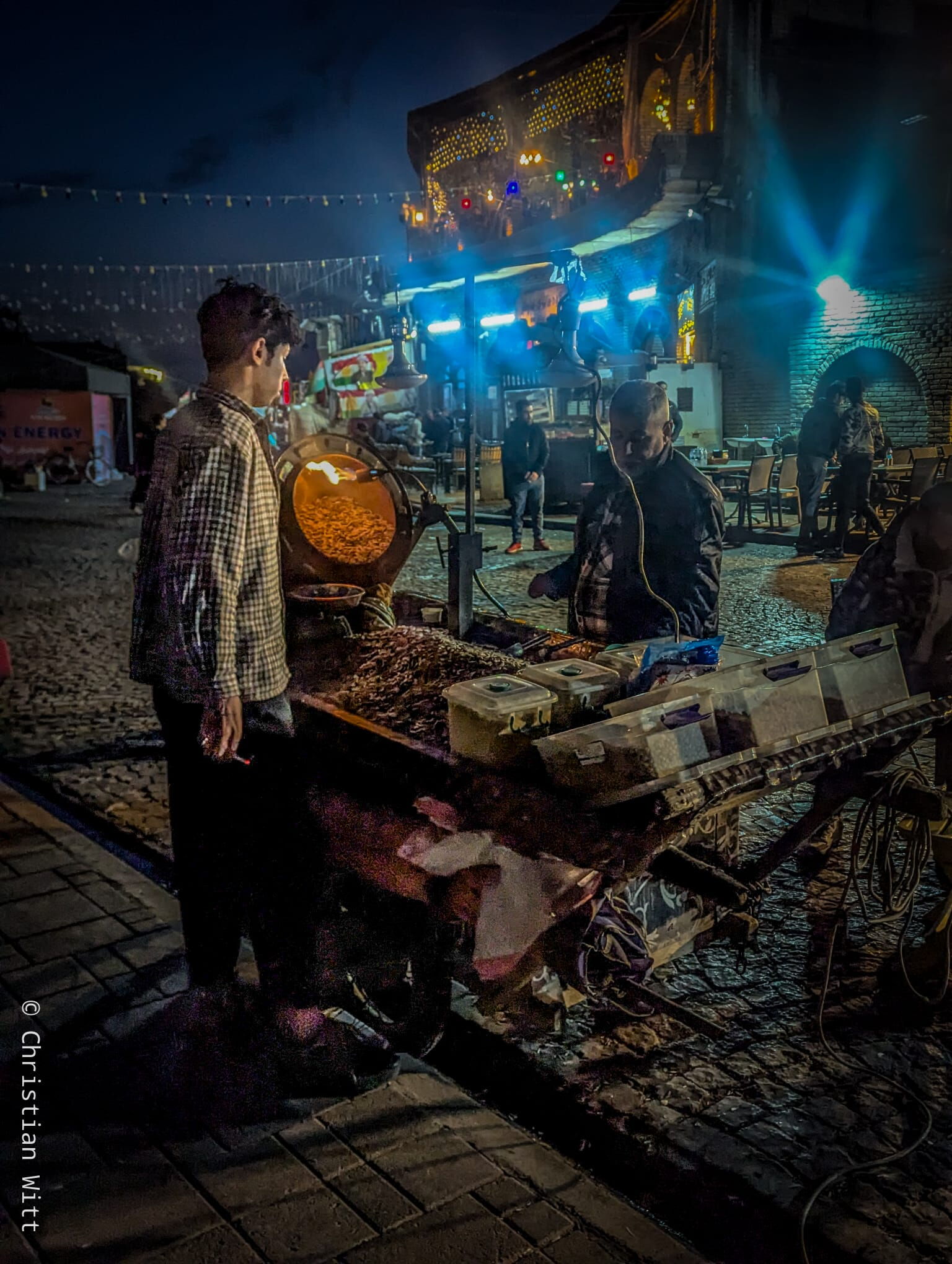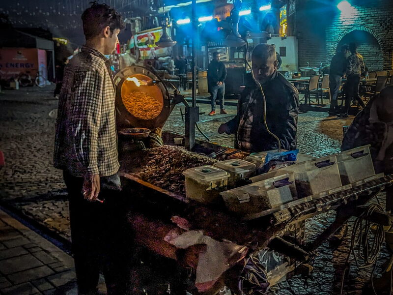 Danach gefragt, was ich hier eigentlich will, hat man mich das erste Mal auf dem Markt in Erbil gefragt und mich dabei ein wenig schräg angeschaut, als ich sagte, dass ich als Tourist unterwegs bin. Ich hätte vielleicht lieber sagen sollen, ich sei Reisender, was tatsächlich näher an der Wirklichkeit liegt. Ich bin ein Reisender in Sachen Krieg und bekomme ein freundliches Erbil im Frieden serviert.