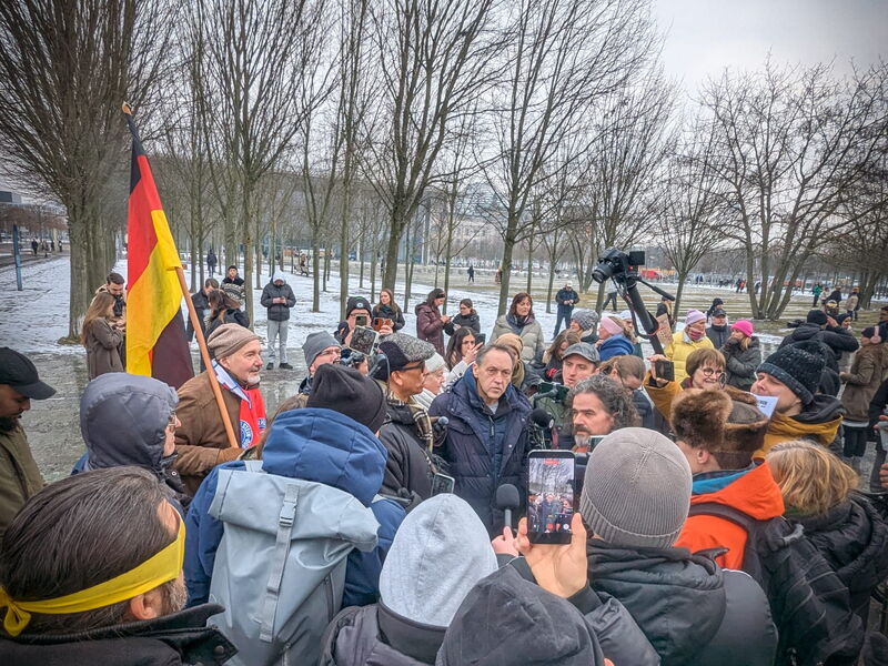 Zum Abschluss war ein Auftritt von Xavier Naidoo angekündigt. Doch dazu kam es nicht. Kurz vor seinem Erscheinen löste die Polizei die Versammlung auf. Die Begründung, so ein Ordner auf Nachfrage: Von der Demonstration gehe eine Gefährdung von Politikern aus.