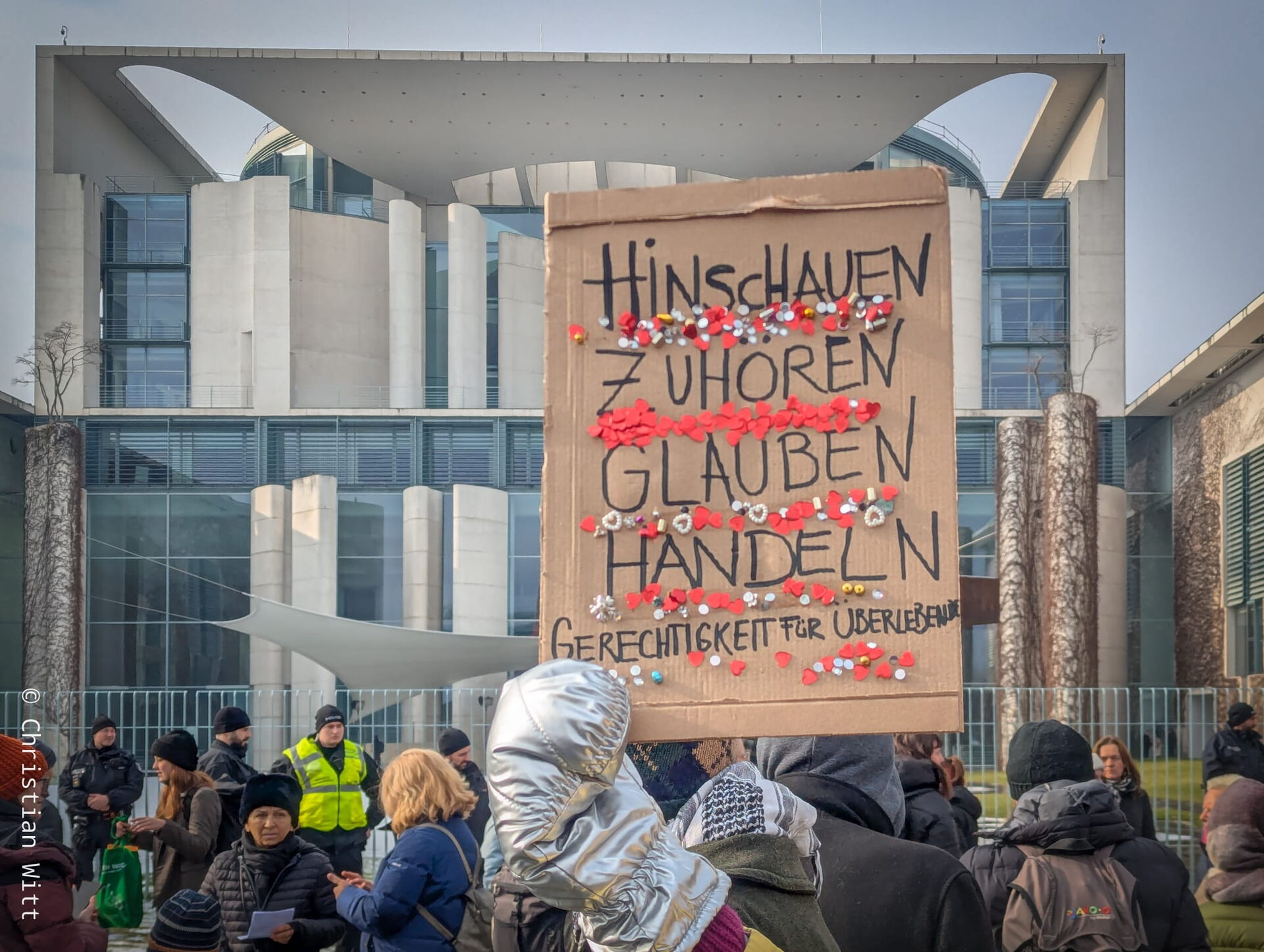Heute Mittag versammelten sich rund 300 Demonstranten vor dem Bundeskanzleramt in Berlin. Ihr Anliegen: ein klares Signal gegen Kindesmissbrauch und für transparente Aufarbeitung. Keine laute Massenveranstaltung, sondern ein stiller, ernster Protest – direkt vor dem Zentrum politischer Verantwortung.