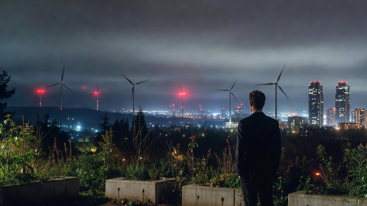Vom hundertfachen Geblinke im Dunkeln mal abgesehen: Die Geräusche, die ich in der Nacht, unruhig werdend, im Bett höre, sind kein Bienensummen. Der kommende Windpark im nächsten Jahr wird bis auf einen Kilometer an unser Dorf herankommen, um die Energiesicherheit im Land zu sichern und uns unabhängig von bösen Mächten zu machen. Ach herrje. Was nicht alles heutzutage gern geglaubt wird.