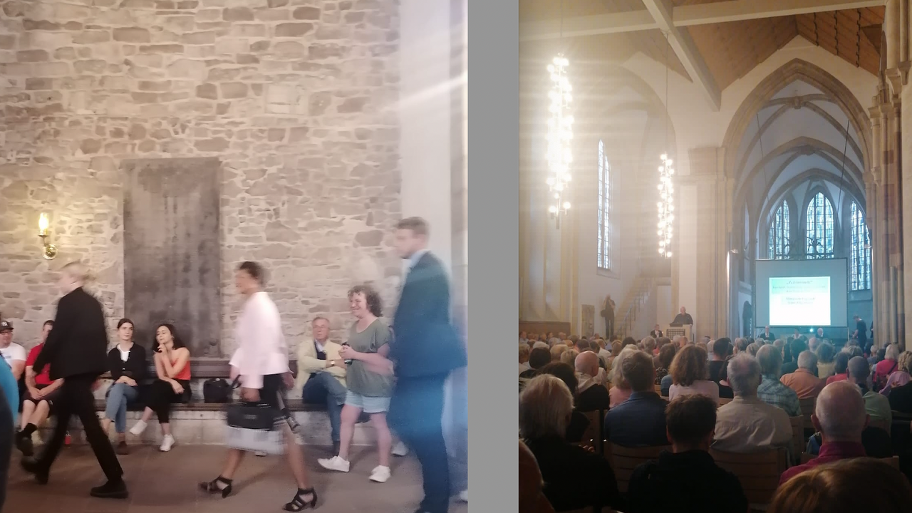 Es war eine unaufgeregte Veranstaltung. Und es waren sehr, sehr viele Menschen gekommen. Die Kirche war rappelvoll, vielleicht fünfhundert, wenn nicht sogar mehr Gäste. Und ja, es hat auch zwei Krakeeler vor der Tür gegeben, die ihre üblichen Slogans gerufen haben wie „Keine Verhandlung“, „Sprecht nicht mit der Wagenknecht“ usw. Ich persönlich halte davon nichts, ich höre mir alle Seiten an und bilde mir hinterher meine Meinung.