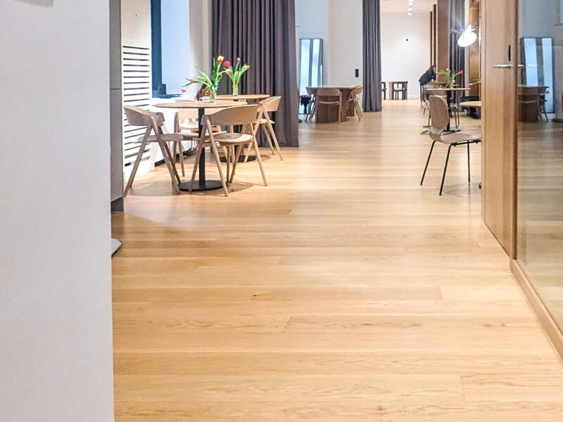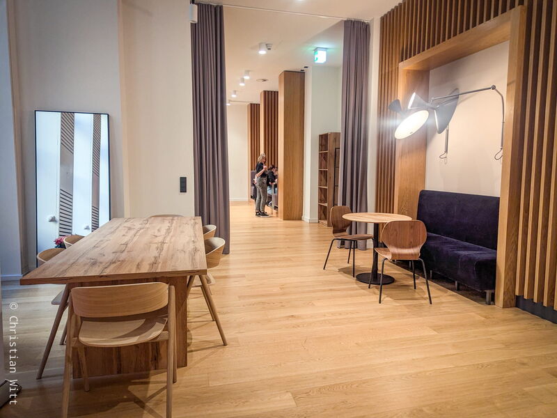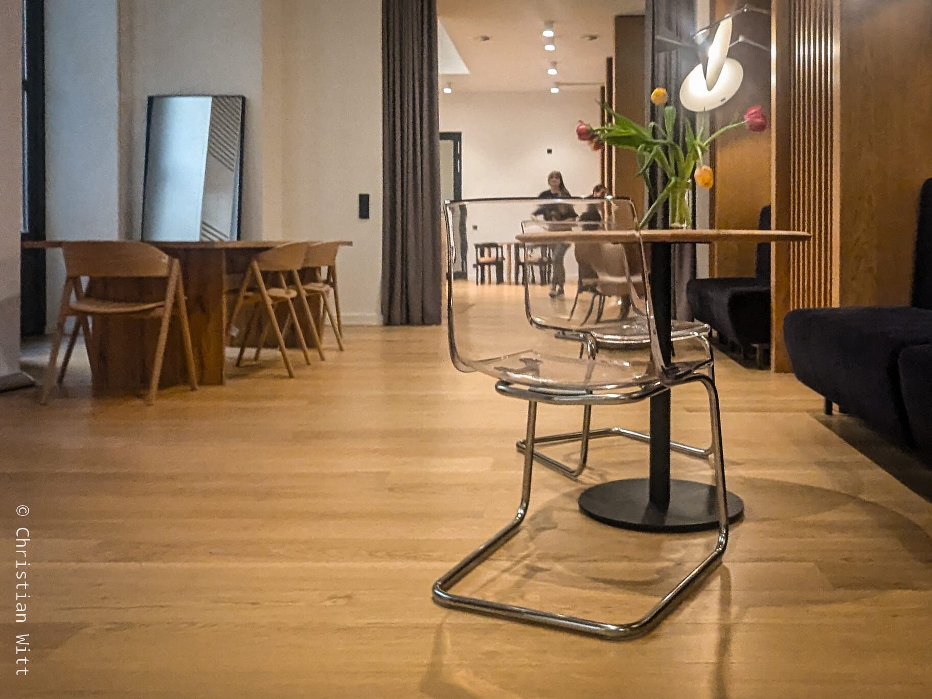 Wie sieht es im Inneren des Unity Hub aus? Der öffentliche Bereich präsentiert sich als langer Schlauch von der kleinen Ladenfront bis ins Innere. Theoretisch könnten hier bei bestuhlten Veranstaltungen 50–60 Personen Platz finden. Aktuell ist alles wie ein Café eingerichtet – ein Hinweis auf die angekündigte Social-Café-Idee. Büros in den angrenzenden Bereichen waren nicht zugänglich.