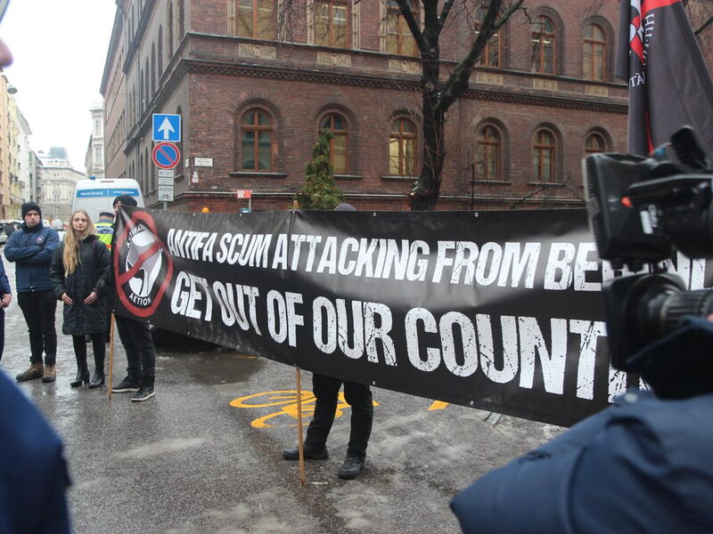 Nein. Niemand. Nur einige wenige Personen in schwarzen T-Shirts, auf denen unter anderem "Anti-Antifa" stand, so etwas.