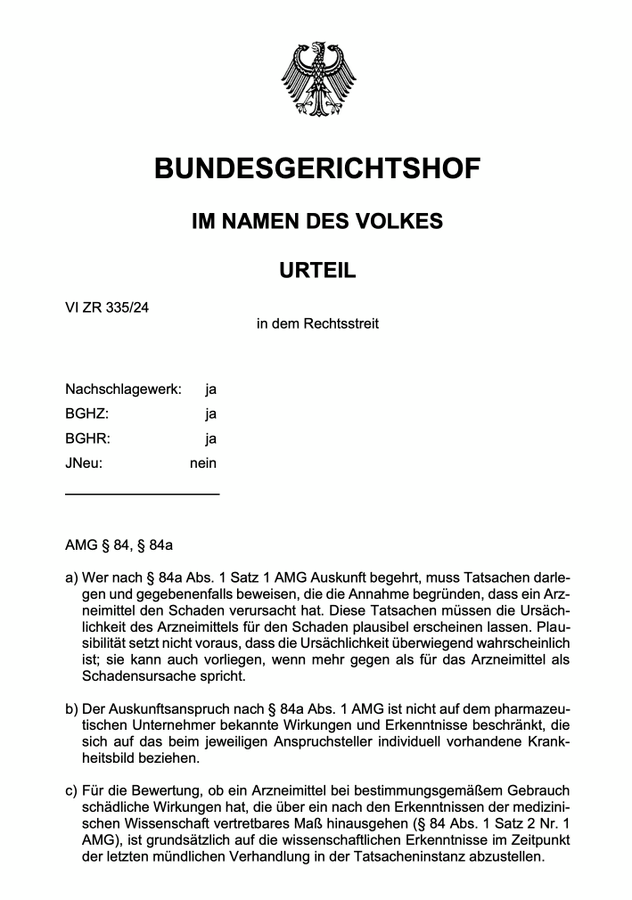 Die vollen Entscheidungsgründe des BGH, Az: VI ZR 335/24 liegen nun vor und ich habe diese nunmehr ausgewertet, was dieses Urteil für die Prozesse für die von uns vertretenen Impfgeschädigten bedeutet: